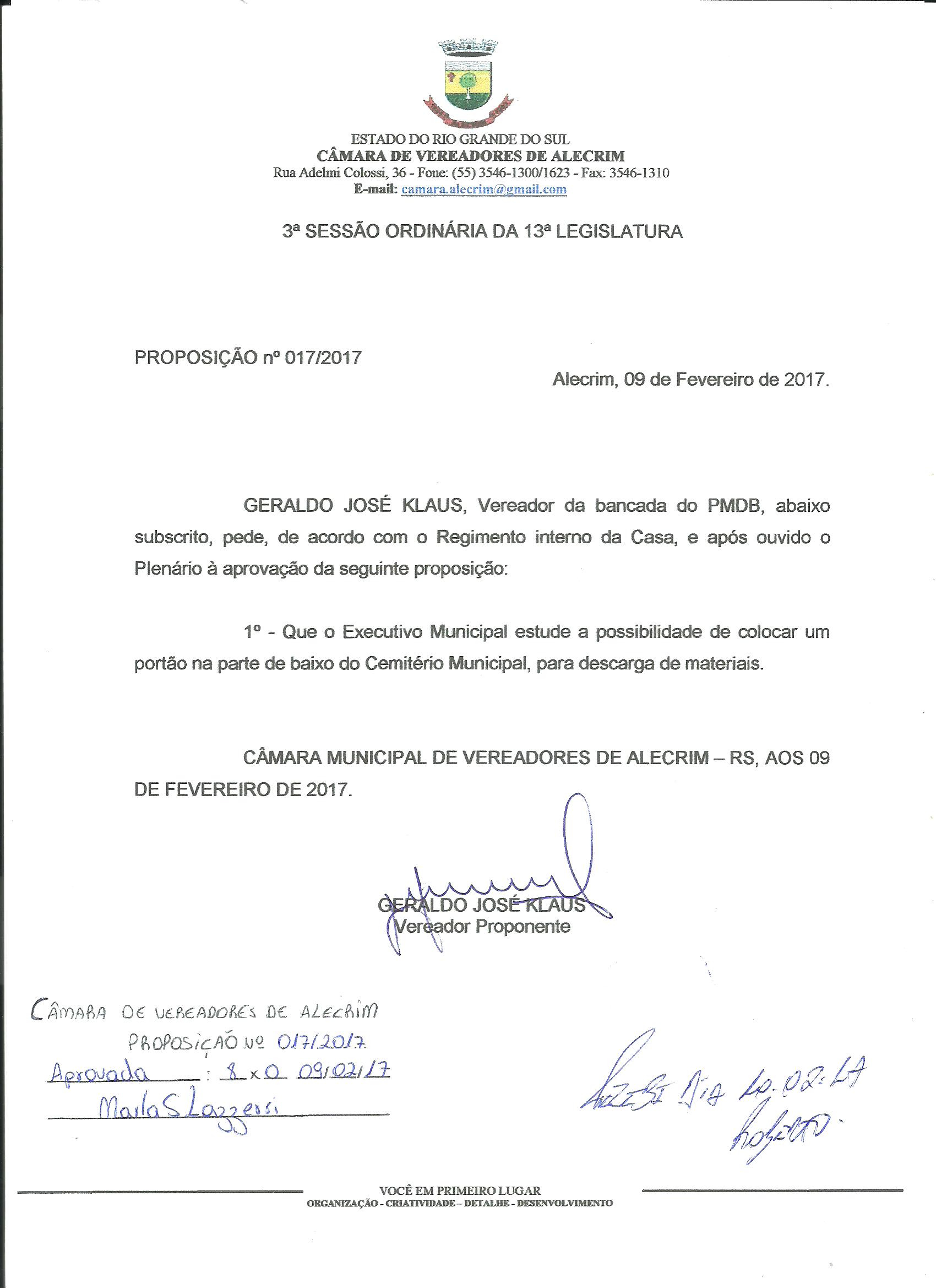 Vereador(es): Geraldo José Klaus
